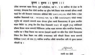 रिक्त पदमा स्थायी शिक्षक सरुवा सम्बनधी सुचना ।